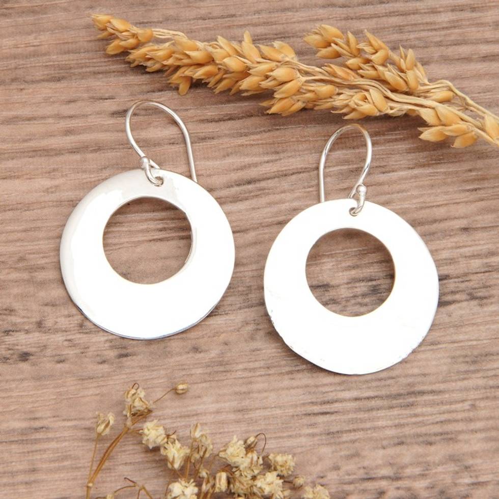 Round Sterling Silver Dangle Earrings with Polished Finish 'Mirror of Moon' Item ID: 2671668202