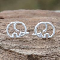 Round Sterling Silver Elephant Stud Earrings from Thailand 'Cute Tusks' Item ID: 2675235470