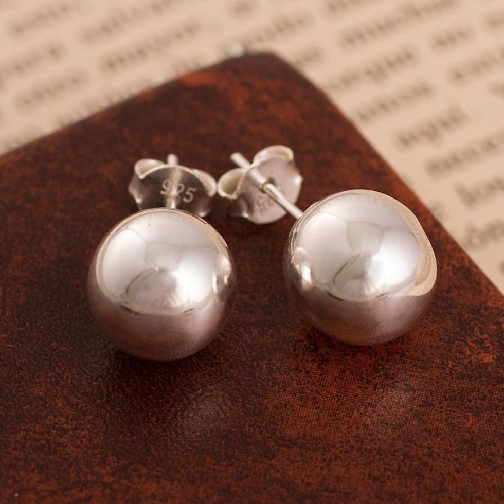 Round Sterling Silver Stud Earrings Crafted in Peru 'Gleaming Orbs' Item ID: 2671691544