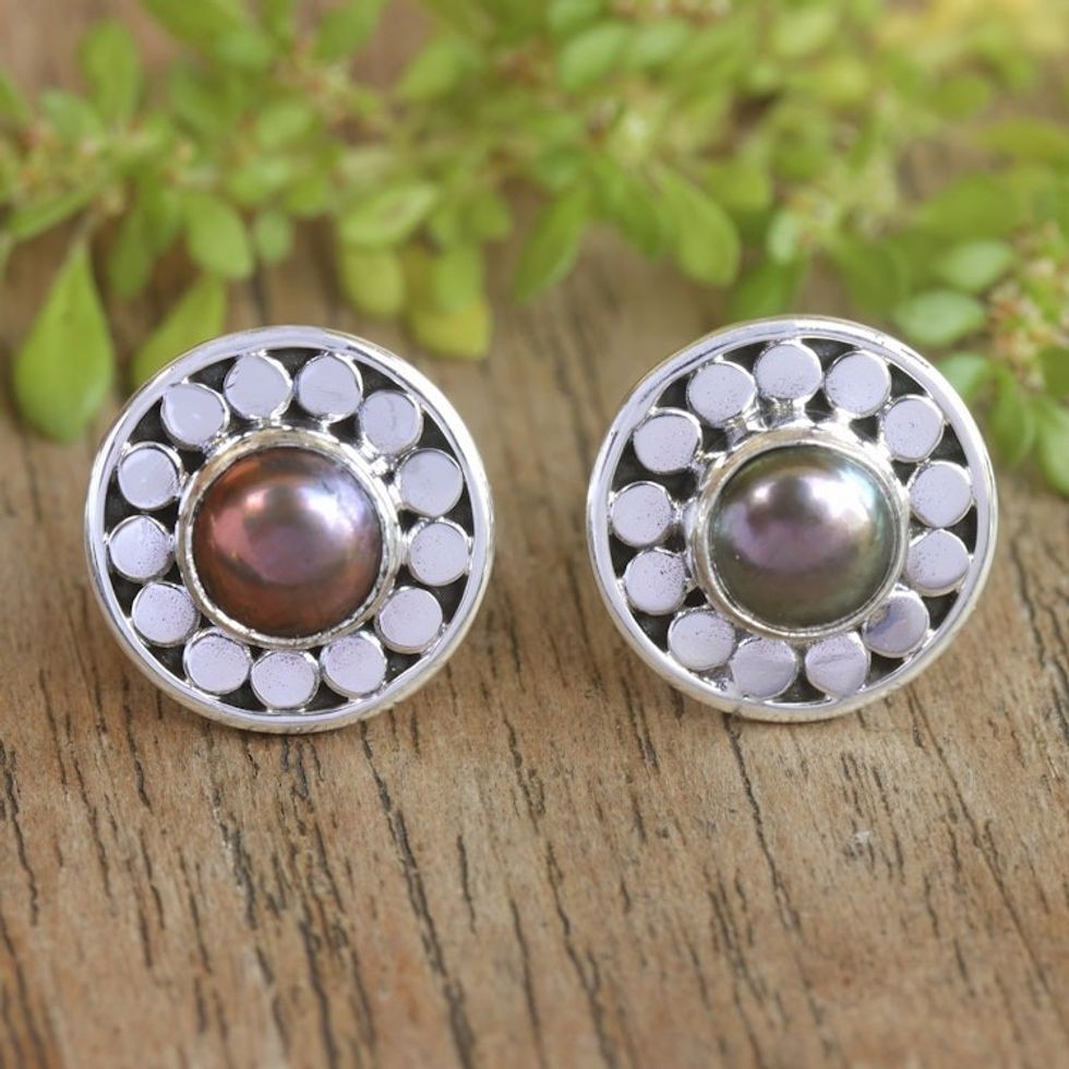 Round Sterling Silver Stud Earrings with Cultured Pearls 'Fabulous Flair' Item ID: 2671763443