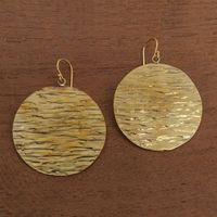 Round Textured Brass Dangle Earrings from Bali 'Elegant Moons' Item ID: 2671744748