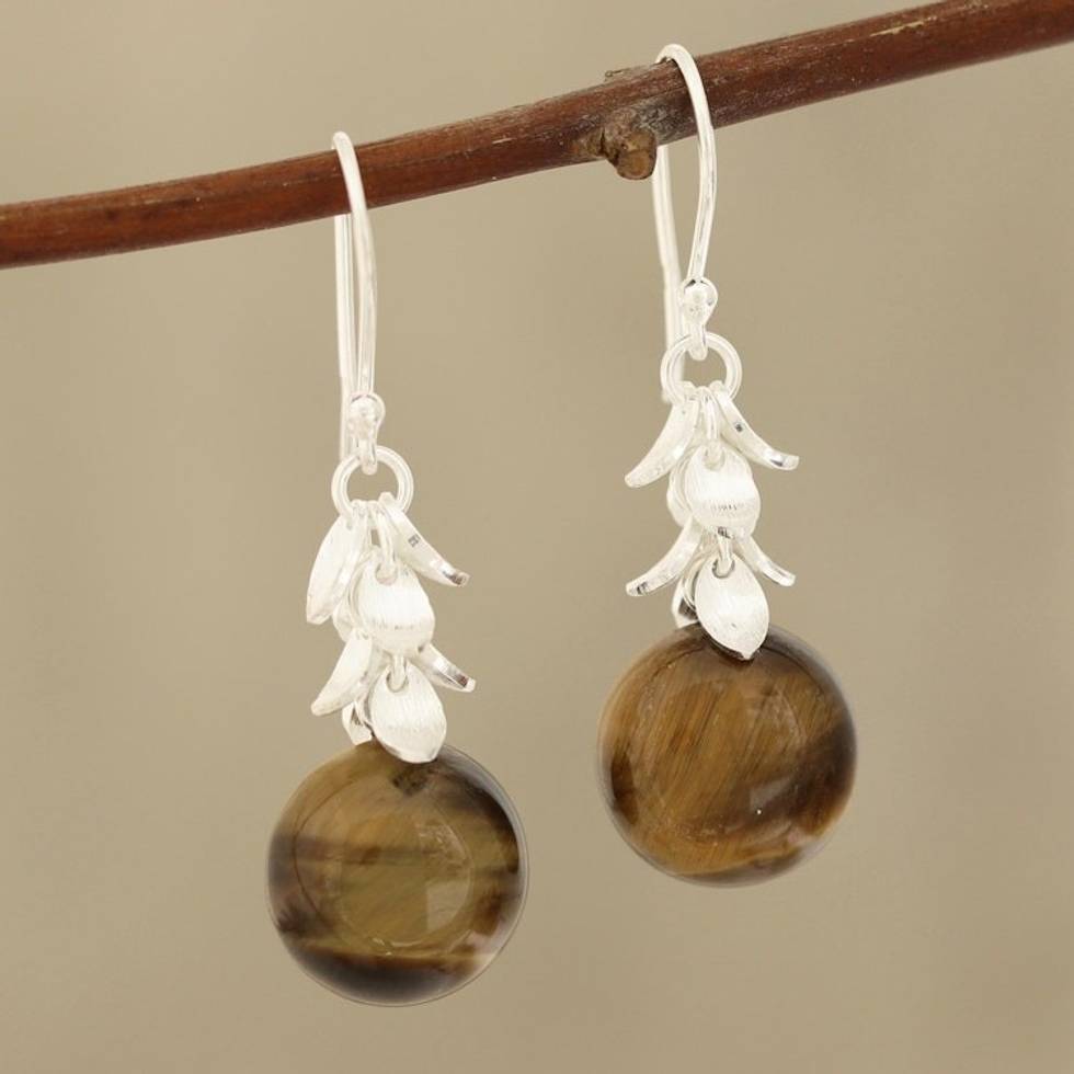 Round Tiger's Eye Dangle Earrings from India 'Dancing Fruit' Item ID: 2671789977