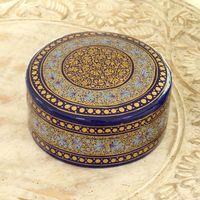 Round Wood and Papier Mache Decorative Box 'Kashmir Cobalt' Item ID: 2671789790