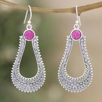 Ruby Dangle Earrings Crafted from Sterling Silver in India 'Ties of Love' Item ID: 2669923806