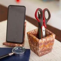 Russet and Brown Marble Desk Accessory Set 'Warm Earth' Item ID: 2671808457