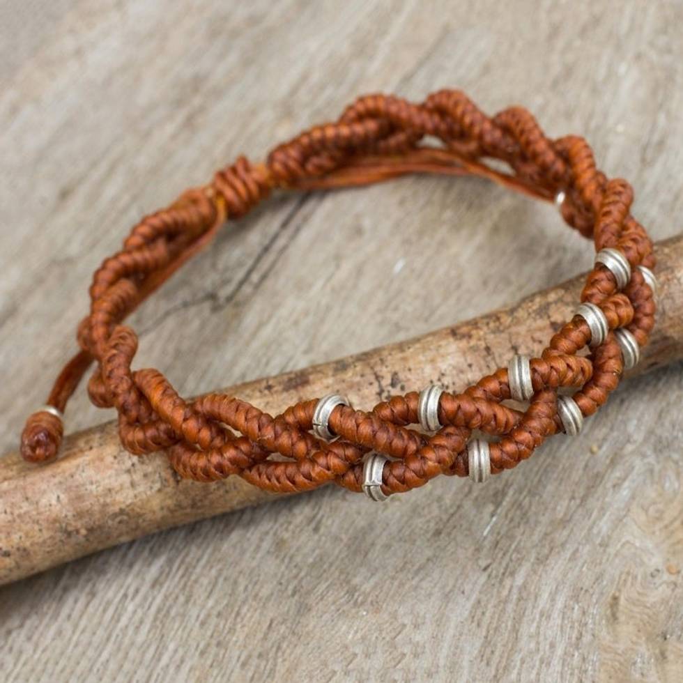 Russet Brown Braided Macrame Bracelet with Silver 'Russet Hill Tribe Bride' Item ID: 2671801807