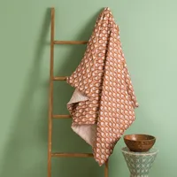 Rust Colored Geometric Pattern Cotton Block Print Throw 'Rust Geometry' Item ID: 2671796399