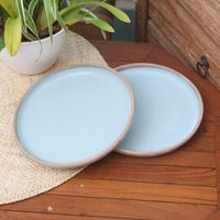 "Unglazed edges lend a wonderfully rustic vibe to these sky blue salad plates. Kika in Java crafts the pair of plates by hand from ceramic."