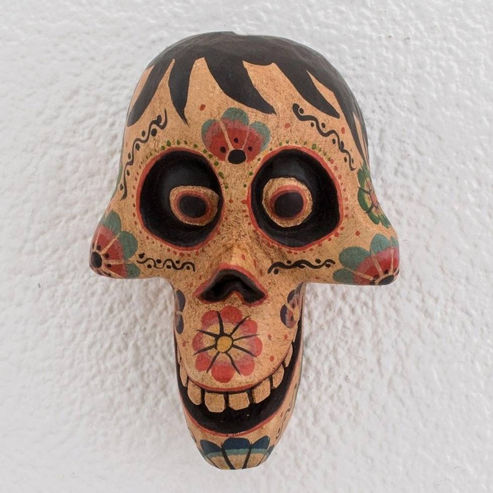 Rustic Pinewood Smiling Skull Mask Crafted in Guatemala 'Happiness from Beyond' Item ID: 2671776653