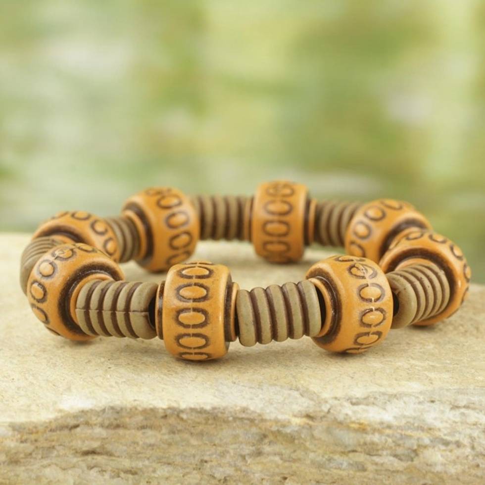 Rustic Recycled Plastic Beaded Stretch Bracelet from Ghana 'Spring for Joy' Item ID: 2671800824