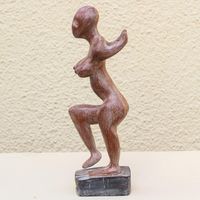 "Standing in a one-legged pose with her arms stretched back, the figure of a sensual woman graces any home. Ghanaian artisan Frank Odei Amoani creates this sculpture, which he carves by hand from sese wood and treats with clay for a rustic finish."