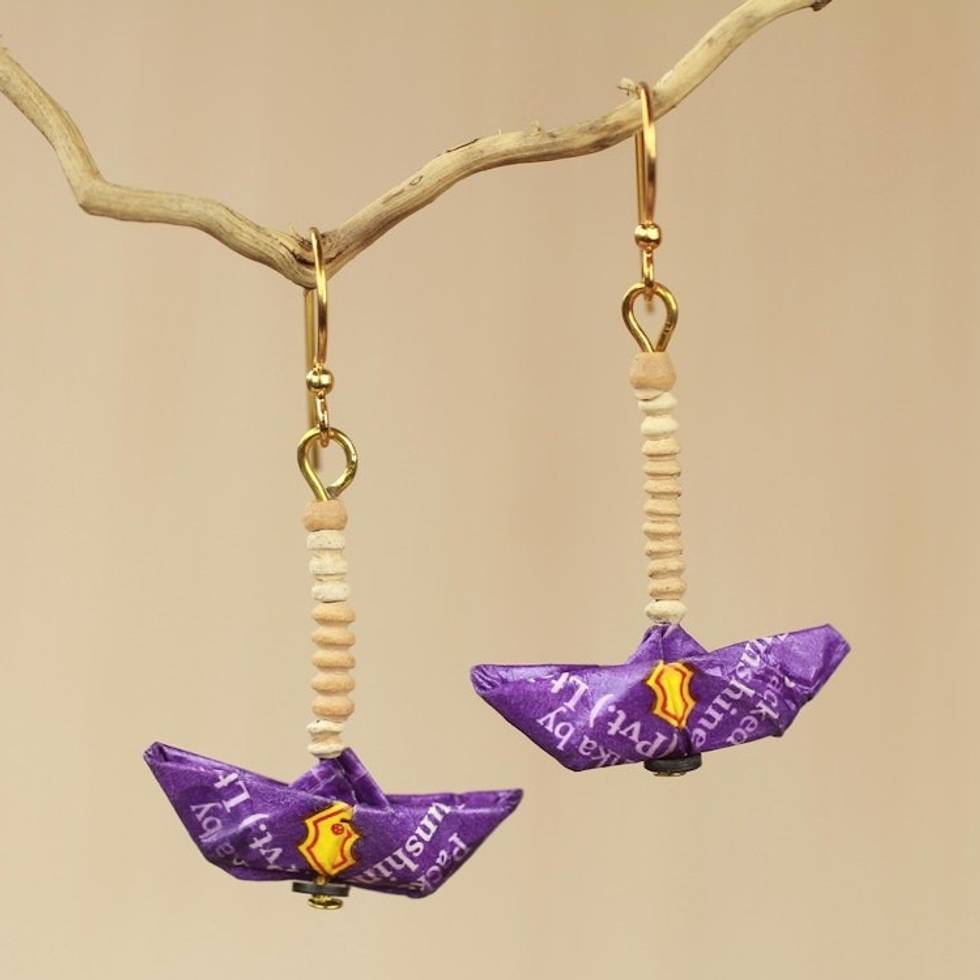 Sailboat Earrings Crafted by Hand with Recycled Paper 'Purple Boats' Item ID: 2671803480