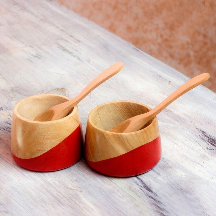 Salsa Bowls and Spoons Hand Crafted pair 'Spicy Red' Item ID: 2671777607