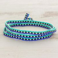 Salvadoran Fair Trade Blue and Black Beaded Wrap Bracelet 'Oceans of Stars' Item ID: 2671778192