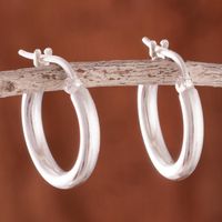 Sandblasted Sterling Silver Hoop Earrings from Peru 'Classic Gleam' Item ID: 2671820424