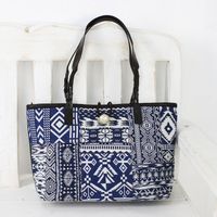 Sapphire Patchwork Cotton Blend Shoulder Bag from Thailand 'Sapphire Geometry' Item ID: 2676650190