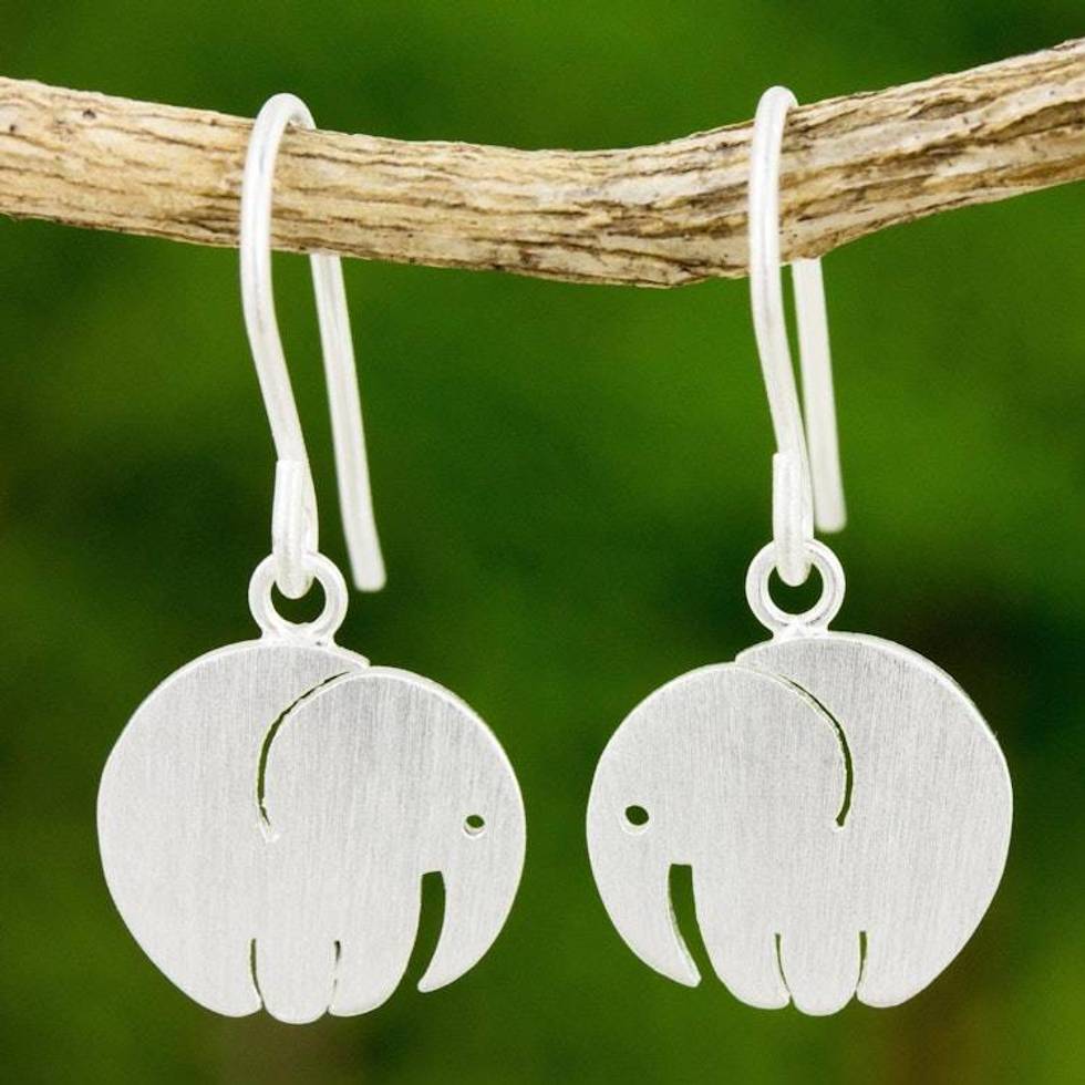 Satin Finish Thai Sterling Silver Elephant Earrings 'Little Round Elephant' Item ID: 2676650457