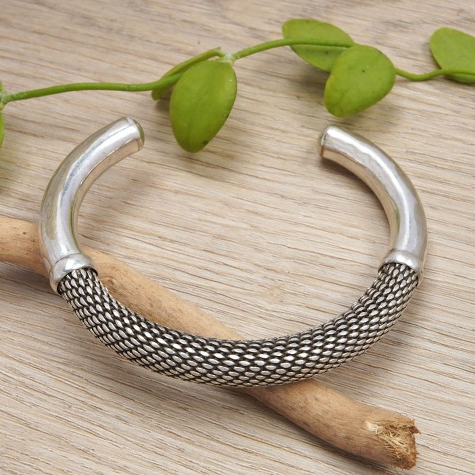 Scale-Patterned Sterling Silver Cuff Bracelet Made in Bali 'Snake Feel' Item ID: 2671765008