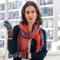 Scarlet and Multi-Color Stripe Handwoven 100 Alpaca Scarf 'Sky Flame' Item ID: 2671401829