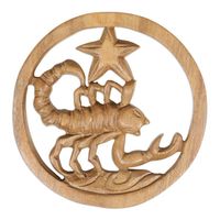 Scorpio-Themed Hand-Carved Round Suar Wood Relief Panel 'Scorpio Firmament' Item ID: 2671764543