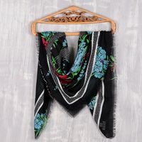 Screen Printed Wool Floral Scarf from India 'Cerulean Flowers' Item ID: 2669925073