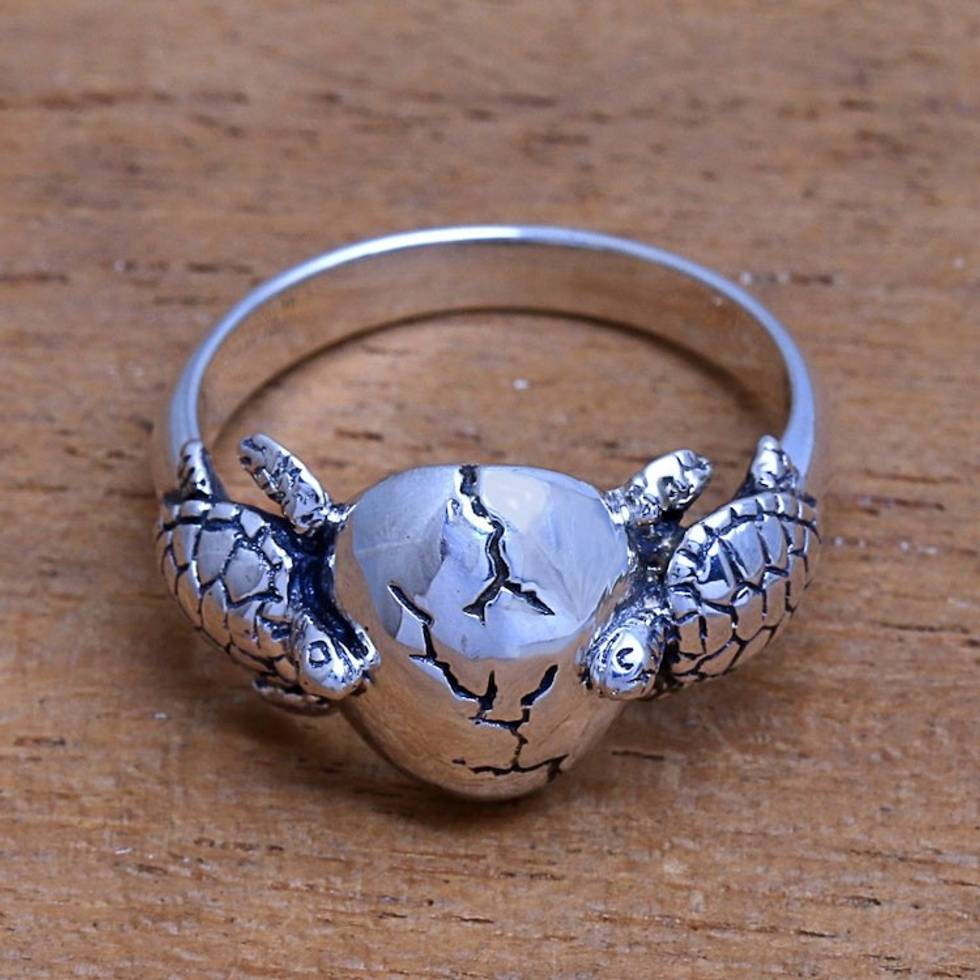 Sea Turtle Sterling Silver Cocktail Ring from Bali 'Turtle Romance' Item ID: 2671735545