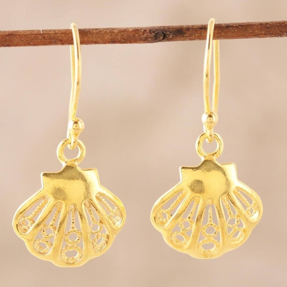 Seashell 22k Gold Plated Sterling Silver Dangle Earrings 'Bright Shells' Item ID: 2671792150