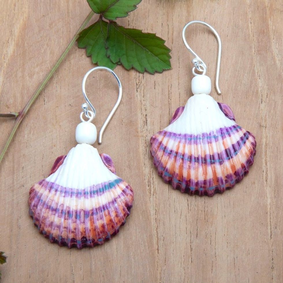 Seashell-Shaped Dangle Earrings Painted by Hand from Bali 'Marine Feelings' Item ID: 2671764901