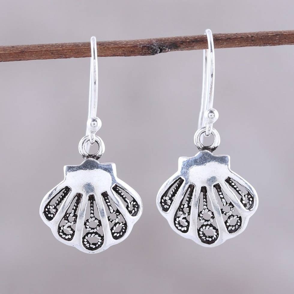 Seashell-Shaped Sterling Silver Dangle Earrings from India 'Bright Shells' Item ID: 2671792905