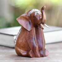 Seated Elephant Hand Carved Wood Sculpture 'Sitting Elephant' Item ID: 2671745593