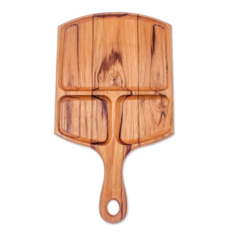 Sectioned Teak Wood Tray Crafted in Thailand 'Delightful Portion' Item ID: 2671798865