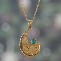 Semi-Abstract Recon Turquoise Brass Pendant Necklace 'Serene Charmer' Item ID: 2671781115