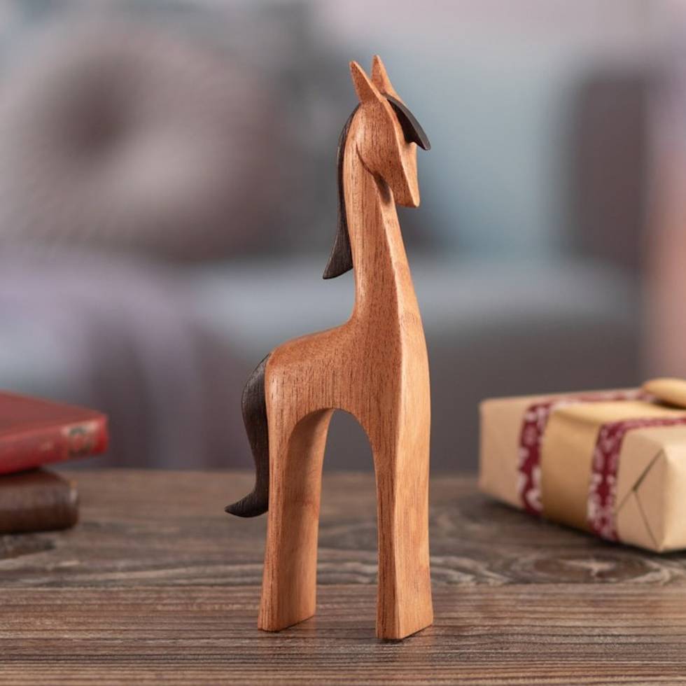 Semi-Minimalist Horse-Themed Cedar Wood Sculpture 'Sophisticated Horse' Item ID: 2671697863