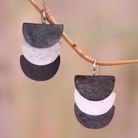 Semicircular Sterling Silver and Dark Copper Dangle Earrings 'Dark Modern Sunset' Item ID: 2671736626