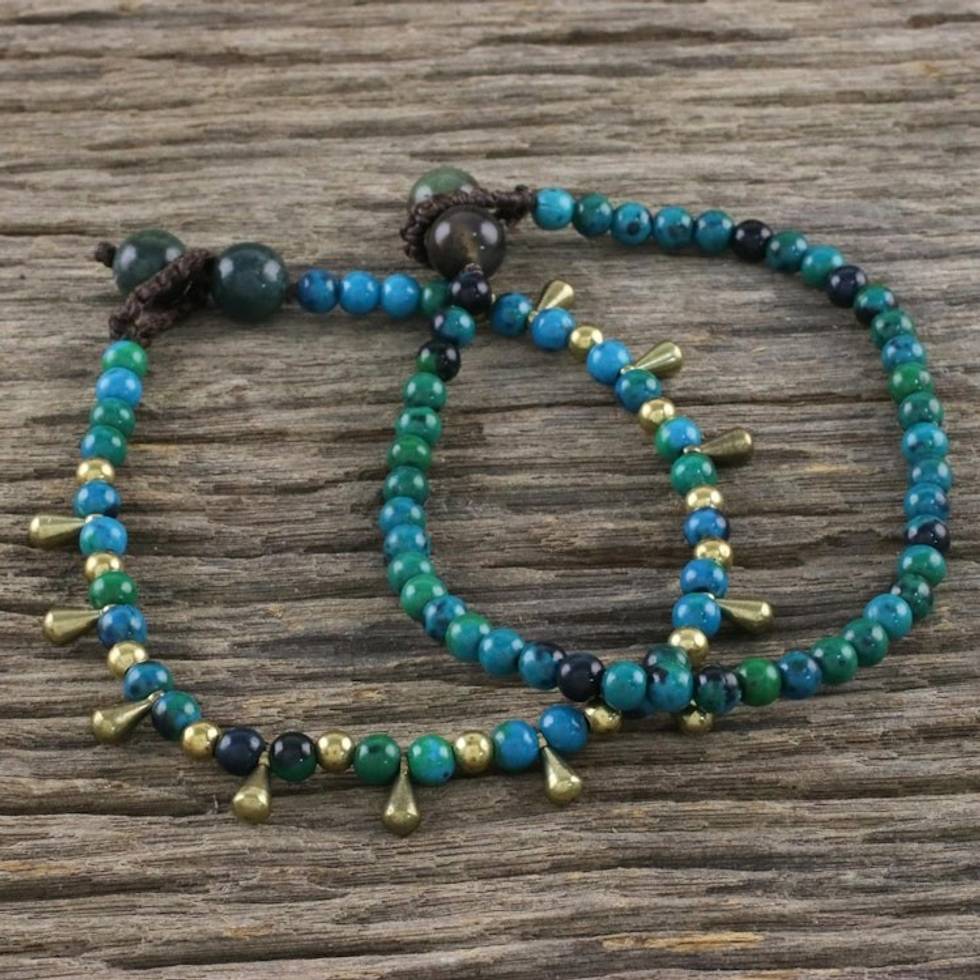 Serpentine and Agate Beaded Bracelets from Thailand Pair 'Beautiful Forever' Item ID: 2671800785
