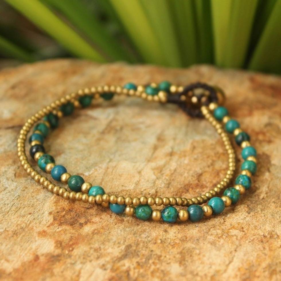I absolutely love Tiraphan Hasub's bracelets. I have several in my collection, and I just ordered another with the Rose Quartz. These are the perfect gift for a friend that loves nature or bohemian style. The little bells on the clasp make a wonderful tinkling sound when worn.