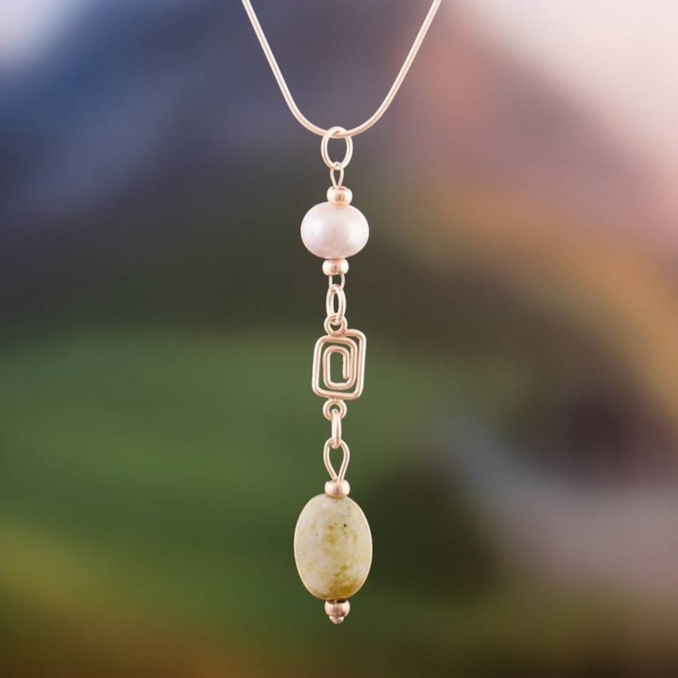 Serpentine Cultured Pearl Silver Spiral Pendant Necklace 'Green Moon Spiral' Item ID: 2671698043