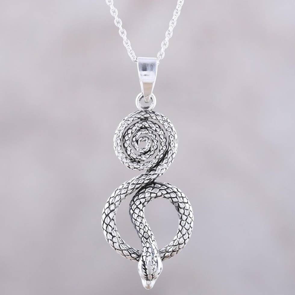 Serpentine Snake Sterling Silver Pendant Necklace from India 'Serpent Swirl' Item ID: 2669924237