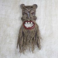 Sese Wood African Tiger Mask with Jute Beard 'Roar of the Tiger' Item ID: 2671801136