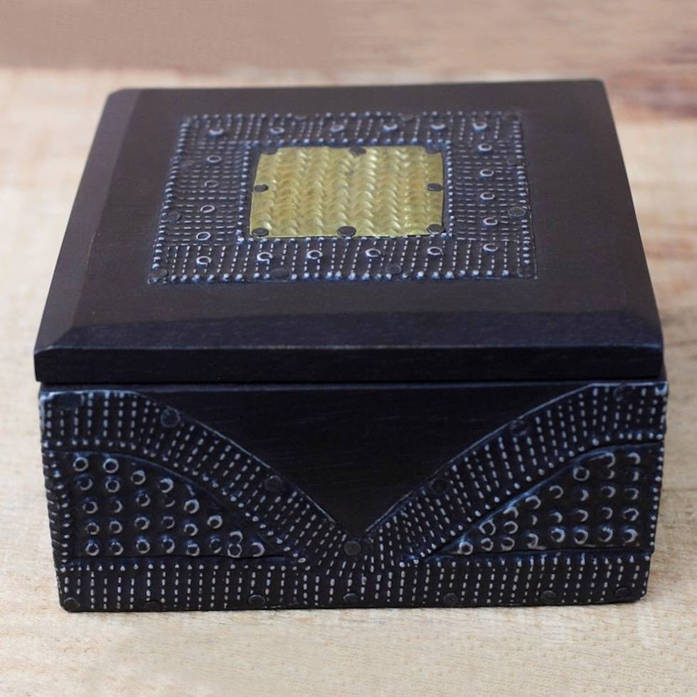 Sese Wood Aluminum and Brass Decorative Box from Ghana 'Royal Keeper' Item ID: 2671805664