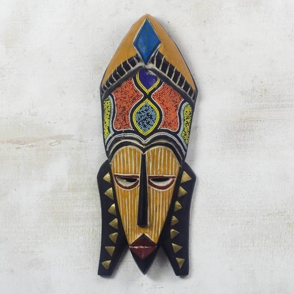Sese Wood and Brass and Recycled Glass Beaded Mask 'Sithembiso' Item ID: 2671800828