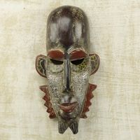 Sese Wood and Embossed Aluminum African Mask from Ghana 'Wambi Beckons' Item ID: 2671803906