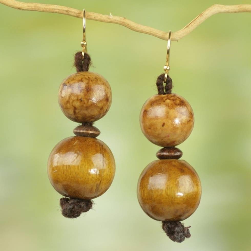 Sese Wood and Nylon Twine Dangle Earrings from Ghana 'Godly Presence' Item ID: 2671801040