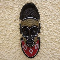 Sese Wood and Recycled Glass Bead Wall Mask 'Festac' Item ID: 2671806127