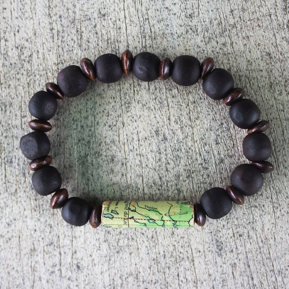 Sese Wood and Recycled Paper Bead Unisex Bracelet 'World Traveler' Item ID: 2671806290