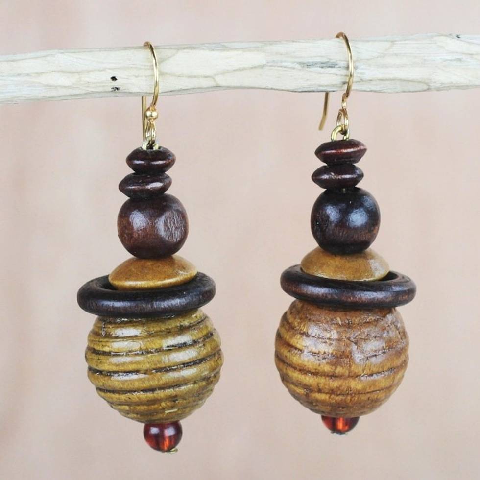 Sese Wood and Recycled Plastic Beaded Dangle Earrings 'Patient Soul' Item ID: 2671805736
