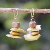 Sese Wood Coconut Shell and Plastic Earrings from Ghana 'African Monolith' Item ID: 2671803802