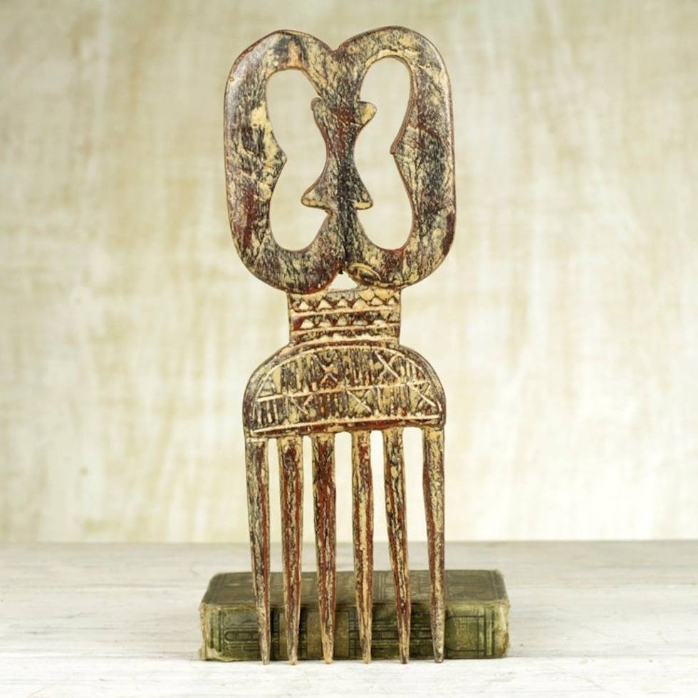 Sese Wood Decorative Comb with a Rustic Finish from Ghana 'Adinkra Unity' Item ID: 2671803863