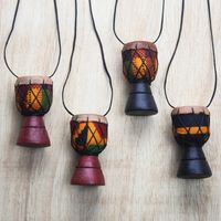 Sese Wood Djembe Drum Ornaments from Ghana Set of 4 'Djembe Colors' Item ID: 2671816170