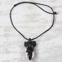 Sese Wood Elephant Head Pendant Necklace from Ghana 'Tusked Trunk' Item ID: 2671806557